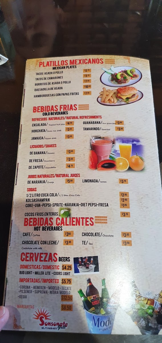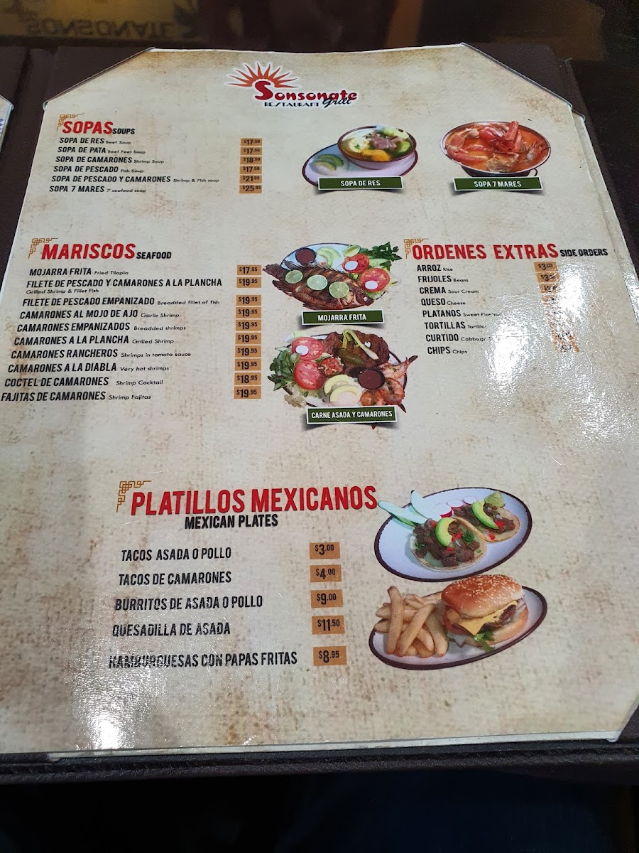Sonsonate Grill Menu